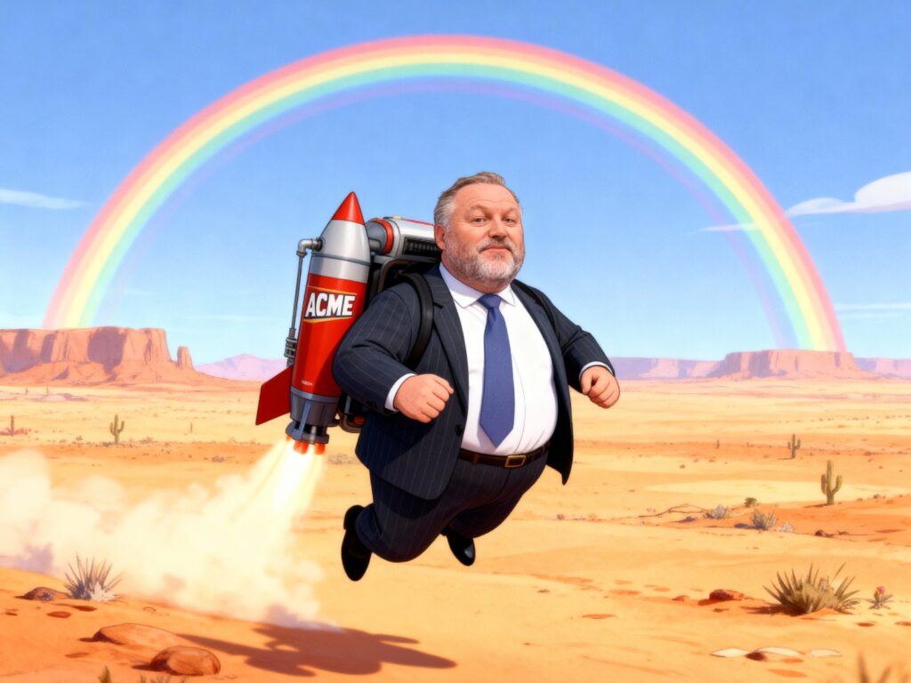 ‘We Are Fair Cop’ founder and amateur aviation enthusiast Harry “The Owl” Miller has taken to the skies in his latest battle against the politicisation of British aerospace, in an ACME-brand rainbow-extracting flying machine designed to preserve the integrity of the sky’s natural blue.