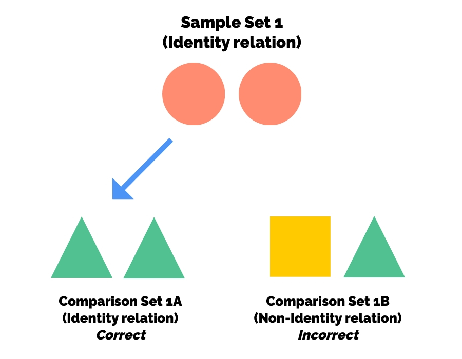 For the second part of the experiment, the sample card was switched to display two different objects, with the cards on each cup displaying a matching pair and another two different objects respectively. In a development that stunned the researchers, Tim was able to spontaneously exhibit, without ever having been trained to do so, an understanding of the relational sameness or difference between the sample card, and the card on the cup containing the reward.